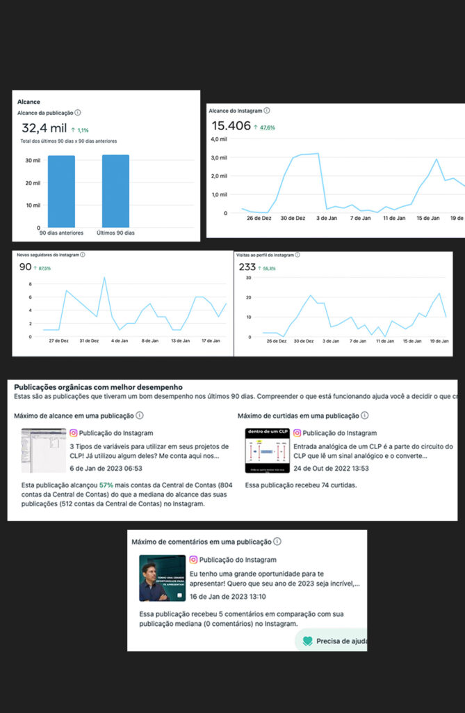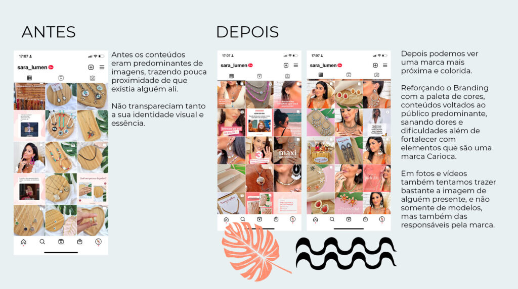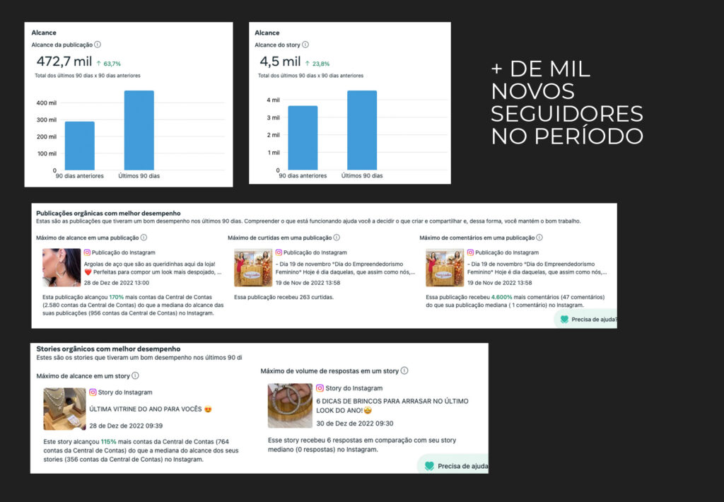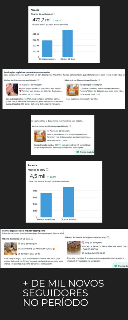 O Acompanhamento com elas é a criação da estratégia, calendário editorial, design de postagens e criativos, edição e roteirização de vídeos, acompanhamento e ideias de calendário de campanhas e promoções.